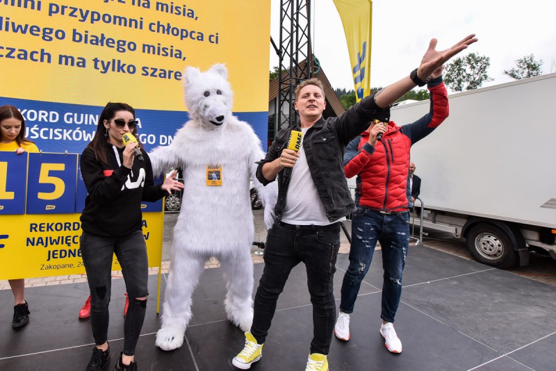 Słuchacze RMF FM, gwiazdy i Biały Miś przejęli Zakopane! Od samego rana zwiedzaliśmy Zakopane. Byliśmy między innymi na Kasprowym Wierchu, Wielkiej Krokwi, Gubałówce i na Krupówkach. Razem z Margaret, Eweliną Lisowską, Antkiem Smykiewiczem, Staszkiem Karpiel-Bułeckim iustanowiliśmy nowy rekord Guinnessa - w przytulaniu się do Białego Misia!
