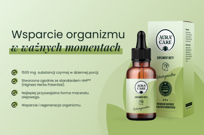 Ciekawą propozycją dla osób, chcących zadbać o siebie od środka, okazuje się być suplement diety „Ashwagandha” od Aura Care – ekstrakt 1:1, który wspiera ogólne samopoczucie psychiczne, niweluje stany zapalne w organizmie oraz redukuje napięcie nerwowe. To naturalny produkt, którego już 32 krople dziennie zapewniają bardzo wysoką dawkę ashwagandy – aż 1500 mg. Suplement wyróżniają najwyższe standardy maceracji, stworzone przez Instytut Rozwoju Badań i Suplementów - HHP™ - Highest Herbs Potential - które pozwalają na uzyskanie z rośliny najwyższego potencjału (poprzez stosowanie procesów, dostosowanych do charakteru surowca i jego naturalnego profilu związków roślinnych). To standard, porządkujący pracę z surowcami roślinnymi w suplementacji – oparty na obserwacji, doświadczeniu i zrozumieniu biologii roślin (a nie na jednym, schematycznym podejściu). Co ciekawe, działania Instytutu Rozwoju Badań i Suplementów od lat odpowiadają na potrzebę lepszego rozumienia jakości suplementów, porządkowania procesów badawczych i produkcyjnych oraz zwiększania bezpieczeństwa i komfortu użytkowników. To miejsce, które wspiera także innowacyjne, a przy tym przemyślane rozwiązania - instytucja, patrząca na produkt całościowo, stawiająca na odpowiedzialność, uporządkowanie i wiedzę w branży suplementów diety.